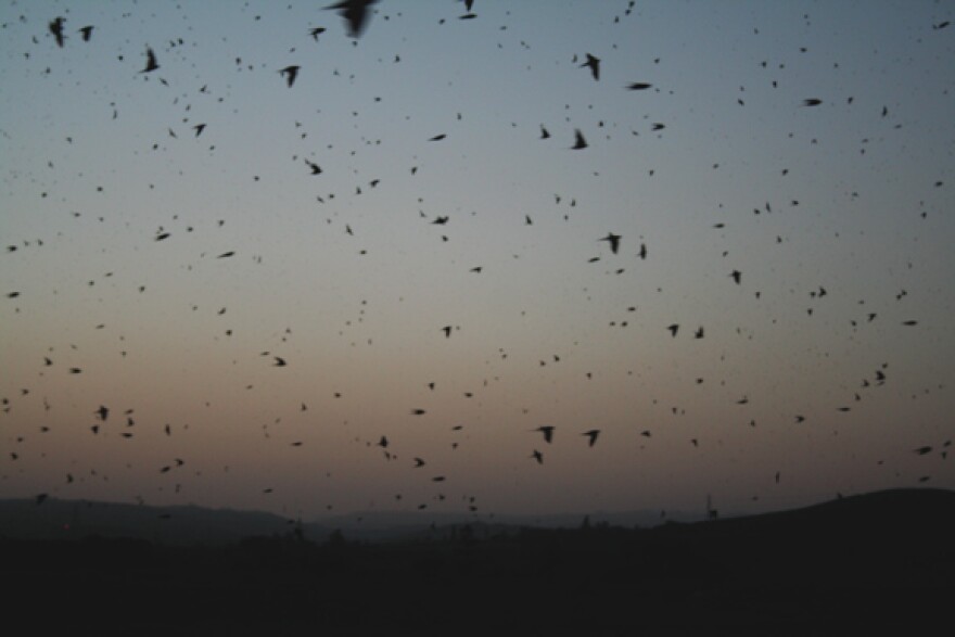 Seen from a distance, these swallow flocks seemed more meteorological than organic. With grackles, and even starlings, one gets the sense that their flocks are always moving from one place to another, even if the purpose is not clear. There’s a deliberateness in their movements, whereas swallow flocks seem much more passive, much more cloud-like to watch. They seem to expand or contract like smoke or leaves blown in the wind. Scarves of a hundred or so birds would spin off and then be lifted several hundred feet up into the sky, in a whirling spiral, only to descend again back into the mass. It was like watching a storm of birds, moved by an unseen engine of energy, under a hot clear late-summer sky. It had that coordinated chaos of storm clouds, or surf on a rocky shore, so that each part of it seemed both independently passive and yet connected by some larger, invisible force.