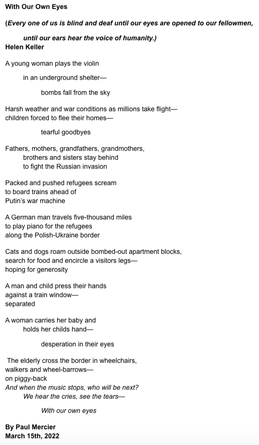 Paul Mercier shares the poem, "With Our Own Eyes."