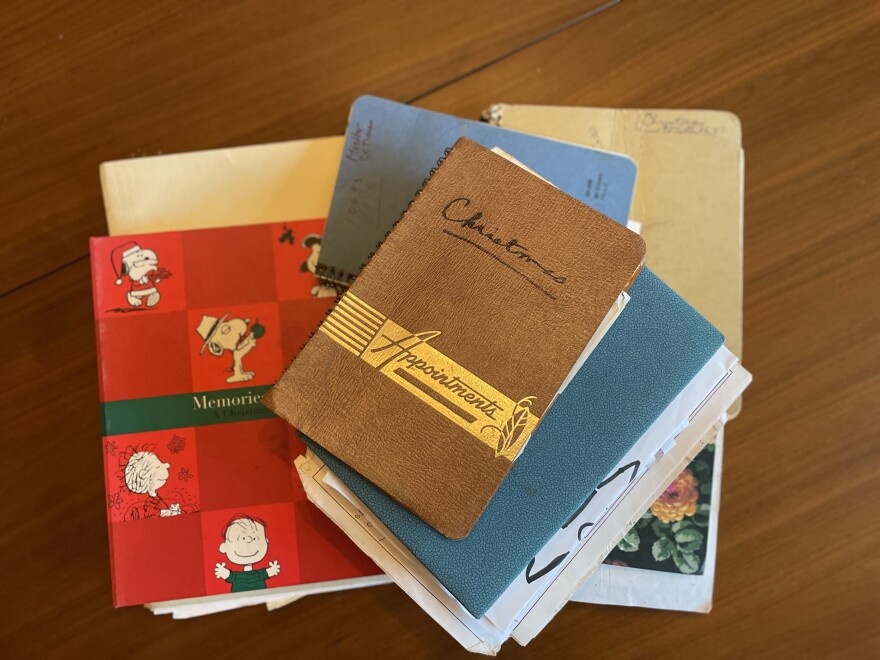 Each holiday, I make a list of recipients and make some note of their gifts. Most years it’s 20 or so people, but in the 1980s it ballooned to more than 40 with aunties and cousins and dog walkers and teachers and children’s friends. The lists have spanned five generations, and I have a shot at six. The notebooks also include gifts we received; Christmas card lists (many never sent); some random phone numbers; letters to Santa written by the grandkids; menus and notes for an astounding number of parties and holiday dinners; and, no surprise, newspaper clips on making time for yourself during the holidays.