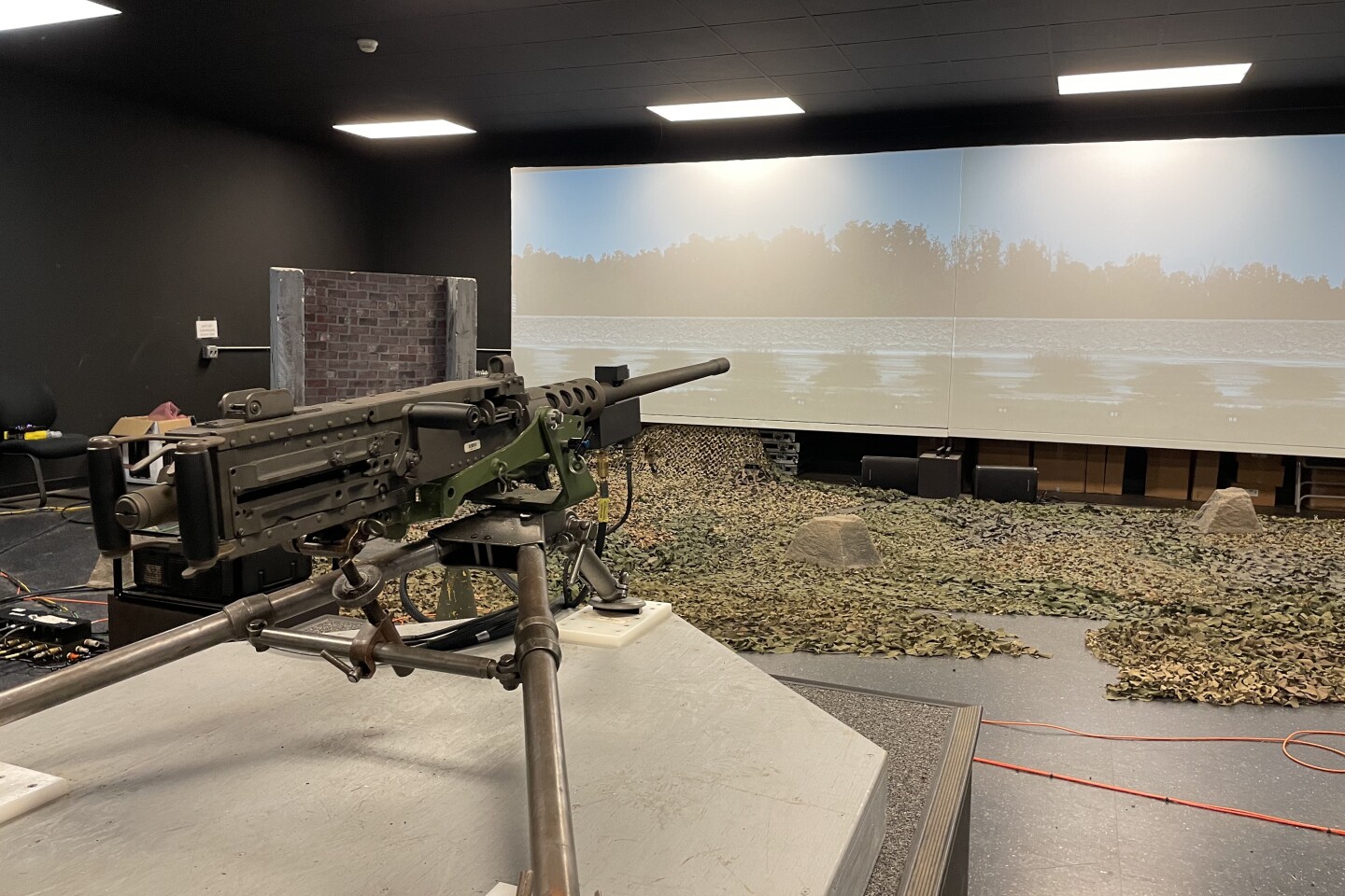 Soldiers practice firing a M2 .50 caliber Browning during a virtual training exercise. This is the weapon the Guard is hoping to get approved for firing at the proposed machine gun range. (Eve Zuckoff)