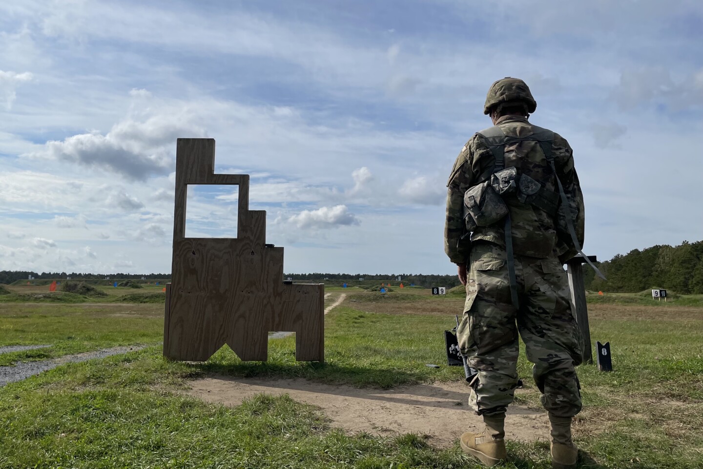 A Guardsman waits to fire on the Sierra Range at Camp Edwards. It is a 300 meter automated rifle qualification range where soldiers are tested on rifle marksmanship. (Eve Zuckoff)