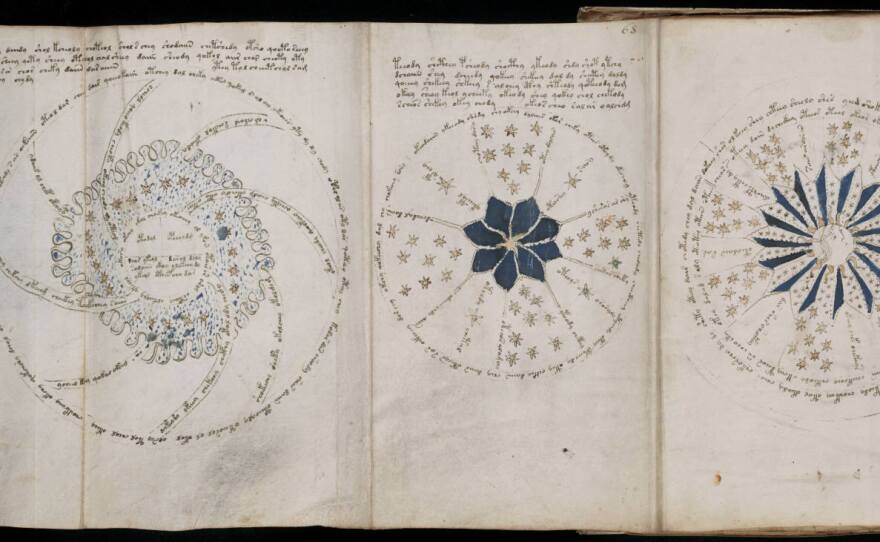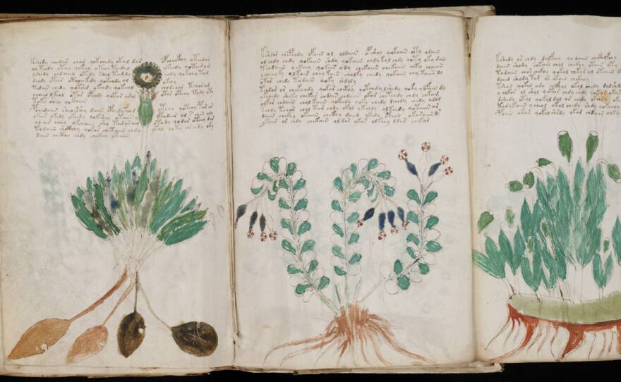 It’s been called the world’s most mysterious book. It was written between 1404 and 1438 in an unknown script by an unknown author. It’s illustrated with plants and star charts that look tantalizingly like real ones, only not quite. And then there are the women - dozens of naked women entering and emerging from tubes that one writer compared to midieval waterslides. But most perplexing of all is the lettering, which is beautifully formed but completely unintelligible.